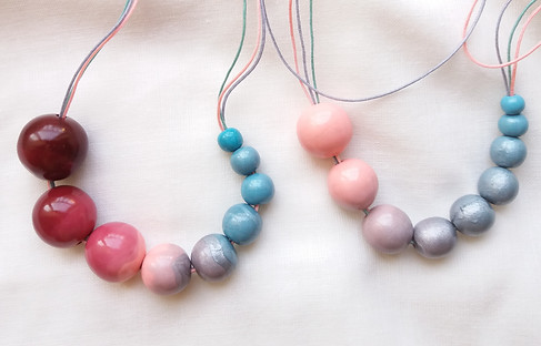 A los Collares de Lactancia y Porteo Titilla Mimón, les he llamado "Ciclo Lunar", porque quería evocar el cambio, la evolución, el crecimiento de esos 9 meses tan especiales, tanto en el tamaño de las cuentas como en el degradado de colores.
